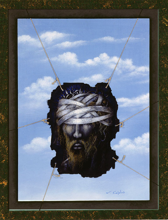 Olio, acrilico, spago e tela su legno, cm 65 x 85